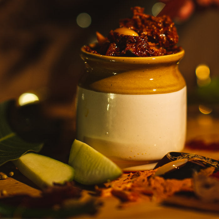Experience a tangy delight with Maagai, the pickle that has stood the test of time. Loved by all, this must-have pickle has a rich history, even said to be a favorite of Lord Krishna. Add this evergreen flavor to your table today.
